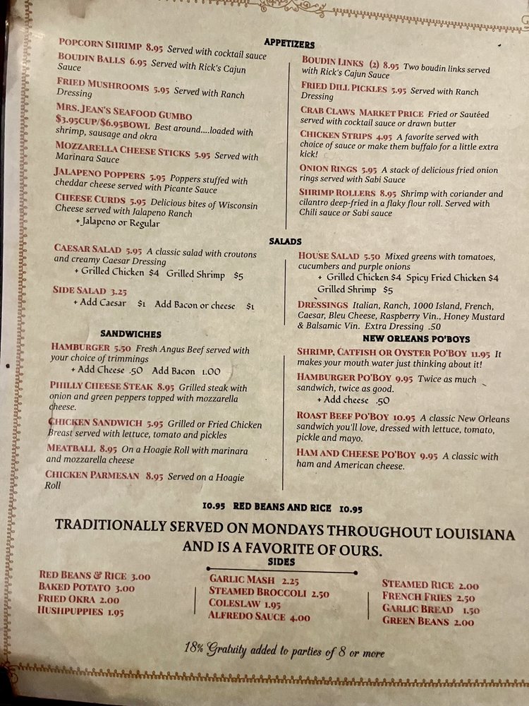 Introducing Rick's Crossroads Grille, a fantastic dining destination offering a delectable menu of steaks, seafood, and sandwiches. Located in Lincoln, AL, this restaurant provides a range of amenities such as reservations, takeout, delivery, outdoor seating, and catering services. With a casual vibe and friendly staff, Rick's Crossroads Grille is perfect for groups, families, and anyone looking for a satisfying meal. Customers rave about the mouthwatering dishes, including prime rib, red beans and rice, fried mushrooms, jalapeƱo poppers, and shrimp Alfredo. Although there may be a wait on busy nights, the quality of the food and service make it well worth it. So, if you're craving delicious eats in a laid-back setting, be sure to check out Rick's Crossroads Grille for a culinary experience you won't soon forget.